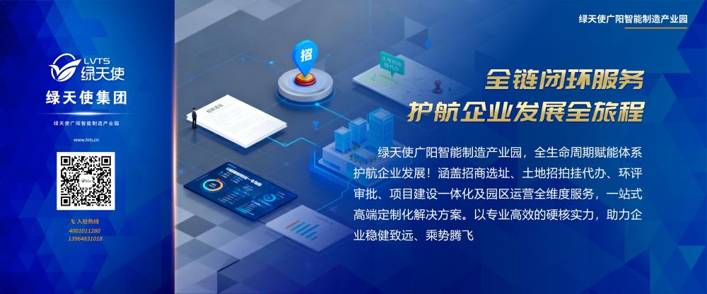 绿天使(广阳)智能制造产业园,位于广阳经济开发区宏业路,兴业道交叉路口,总占地面积422 亩。由入驻绿天使广阳智能制造产业园的项目单位直接通过国有土地招拍挂方式取得土地使用权,按程序规划审批,经过审批后由入驻项目单位自行投资建设,由绿天使统一运用管理和全流程服务。
