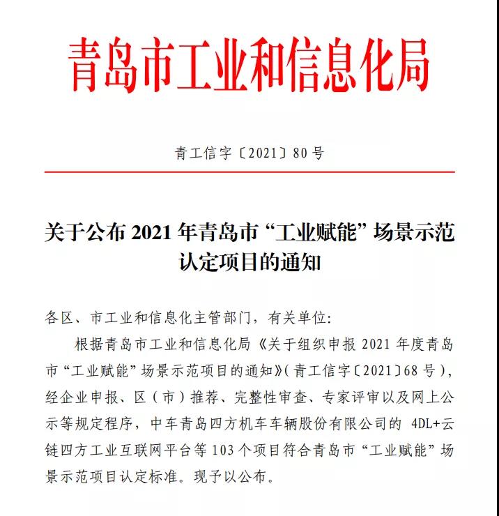 近日,青岛市工业和信息化局发布《2021年青岛市“工业赋能”场景示范拟认定项目名单公示》,绿天使服务专精特新“小巨人”企业青岛德盛机械制造有限公司、青岛橡六胶管有限公司获青岛市“智能工厂”、“自动化生产线项目”项目认定。