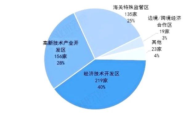 图表:2018年中国国家级产业园区类型分布(单位:家,%)