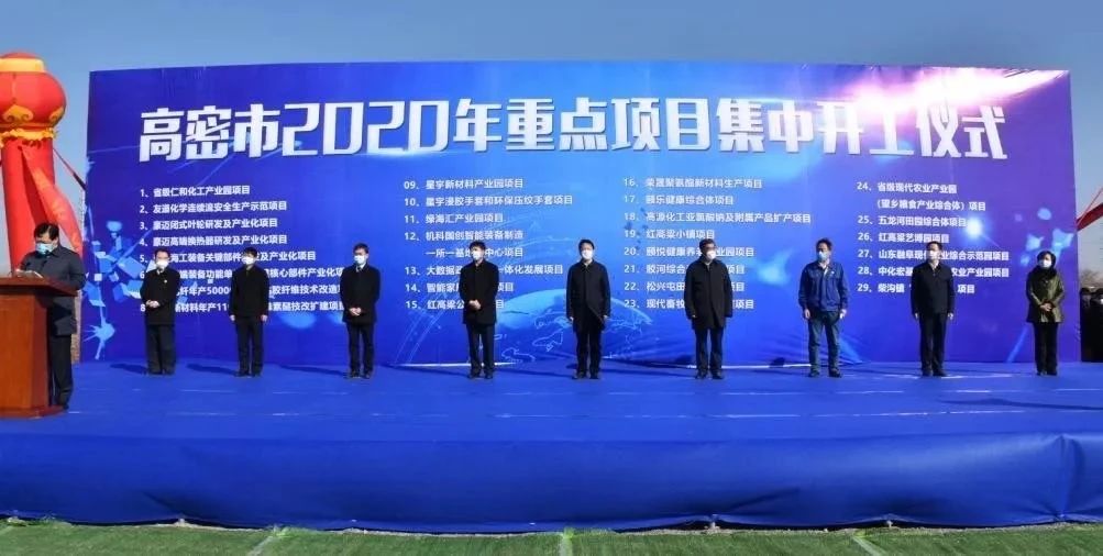 2月22日上午,高密市举行2020年春季项目集中开工活动,潍坊市委书记、市人大常委会主任惠新安,潍坊市副市长王树华出席活动,高密市市委书记卞汉林致辞,市委副书记、市长王文琦主持。在本次集中开工活动中,绿海汇(高密)智能制造产业园奠基开工。高密市副市长付联宝出席绿海汇(高密)智能制造产业园现场奠基仪式并致辞,夏庄镇(高新区)领导班子成员、绿海汇产业园项目施工人员、绿海汇总经理王瑞强、副总经理黄佳参加现场奠基仪式。