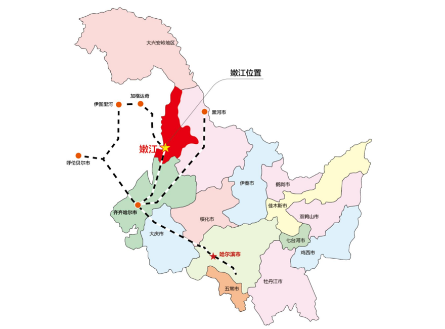 嫩江市位于黑龙江省西北部,嫩江流域上游,处于黑龙江、内蒙古和加格达奇、呼伦贝尔、齐齐哈尔、黑河“两省四市”交汇点。商贸物流繁荣活跃,已发展成为黑龙江省西北部区域中心城市。