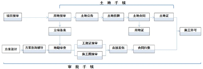 包含规划设计方案审查和建设工程规划许可证核发及人防建设许可区。主管部门指导项目单位,结合产品要求、工艺流程做好项目总平面建筑经济指标设置、建筑单体布置等工作,并就绿色建筑、海绵城市、人防建设、配套设施等涉及到的专业建设方案编制初步方案,同时做好规划许可、人防建设许可同时申报的准备工作。(指导部门: 规建局,配合部门: 经发局(招商局)、行政审批局)