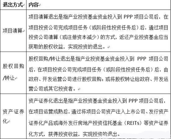 PPP模式下产业投资基金的退出方式:
