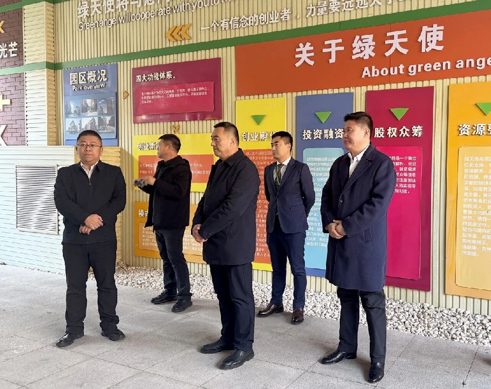 近日,黑龙江哈尔滨五常市市长董兴旺、副市长丁艳旭、经开区副主任宫梁、招商服务中心负责人张严、招商服务中心副主任岳宇鑫等一行来访绿天使集团参观交流,绿天使集团总裁张海洋、副总裁杨文志、产业招商事业部总监李晓东、招商经理吕哲等予以热情接待。张海洋总裁对董兴旺市长一行的来访表示热烈欢迎,并详细讲解了绿天使