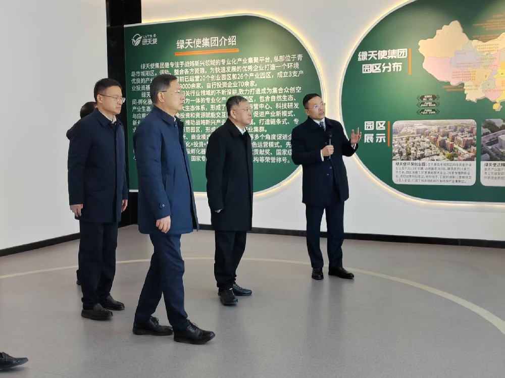 近日,省委常委、组织部部长周立伟一行莅临绿天使高青黄三角药谷产业园调研城阳区与高青县两地园区共建工作推进情况,淄博市市委书记马晓磊、市委常委、组织部部长褚振东,高青县委书记高原,青岛市城阳区相关挂职负责同志参加调研,绿天使科技发展集团董事长王瑞强做园区运营工作汇报。调研期间,王瑞强董事长就黄三